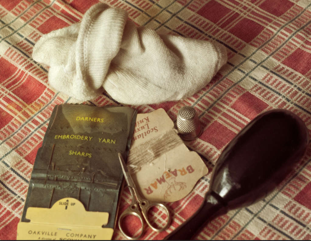 What did the man say when needing to repair his socks?