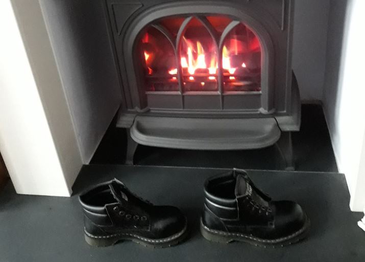 Why did Sam put his shoes close to the fireplace?