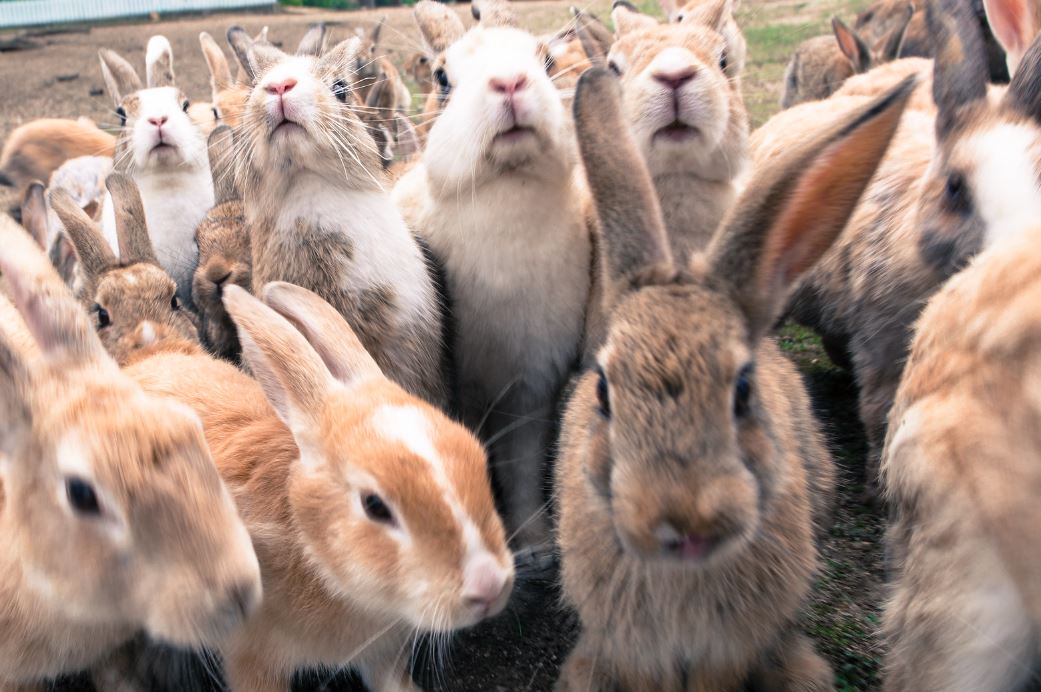In a group of rabbits, how far are they from each other?