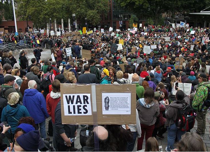 How did people react when Joe pulled down a 'No Demonstrations' sign without getting caught by the police?