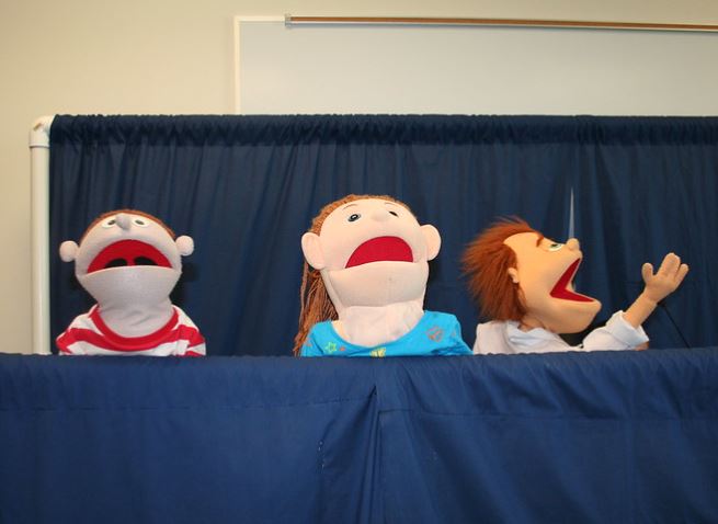 When the class made a puppet show, why did they buy a bag of rolls?